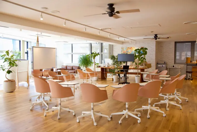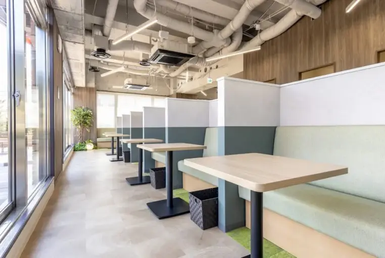 緑を基調とした「アウトドア」をコンセプトにしたこのオフィスでは、開放感のあるテラス席や、フリードリンクなど充実した設備の中活動しています。